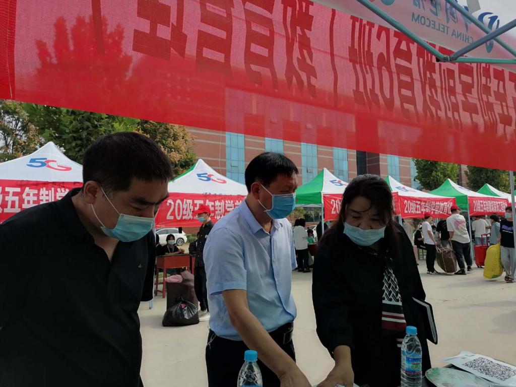 9月13日,是五年制大专部新生报到的日子。中州校区一片喜庆气氛,迎新工作安全、井然有序进行。上午,校长李清臣、校党委副书记李森及相关部门负责人亲临中州校区指导迎新工作、看望迎新工作人员,并与2020级新生和家长亲切交谈,让新生感受到周职大家庭的温暖。