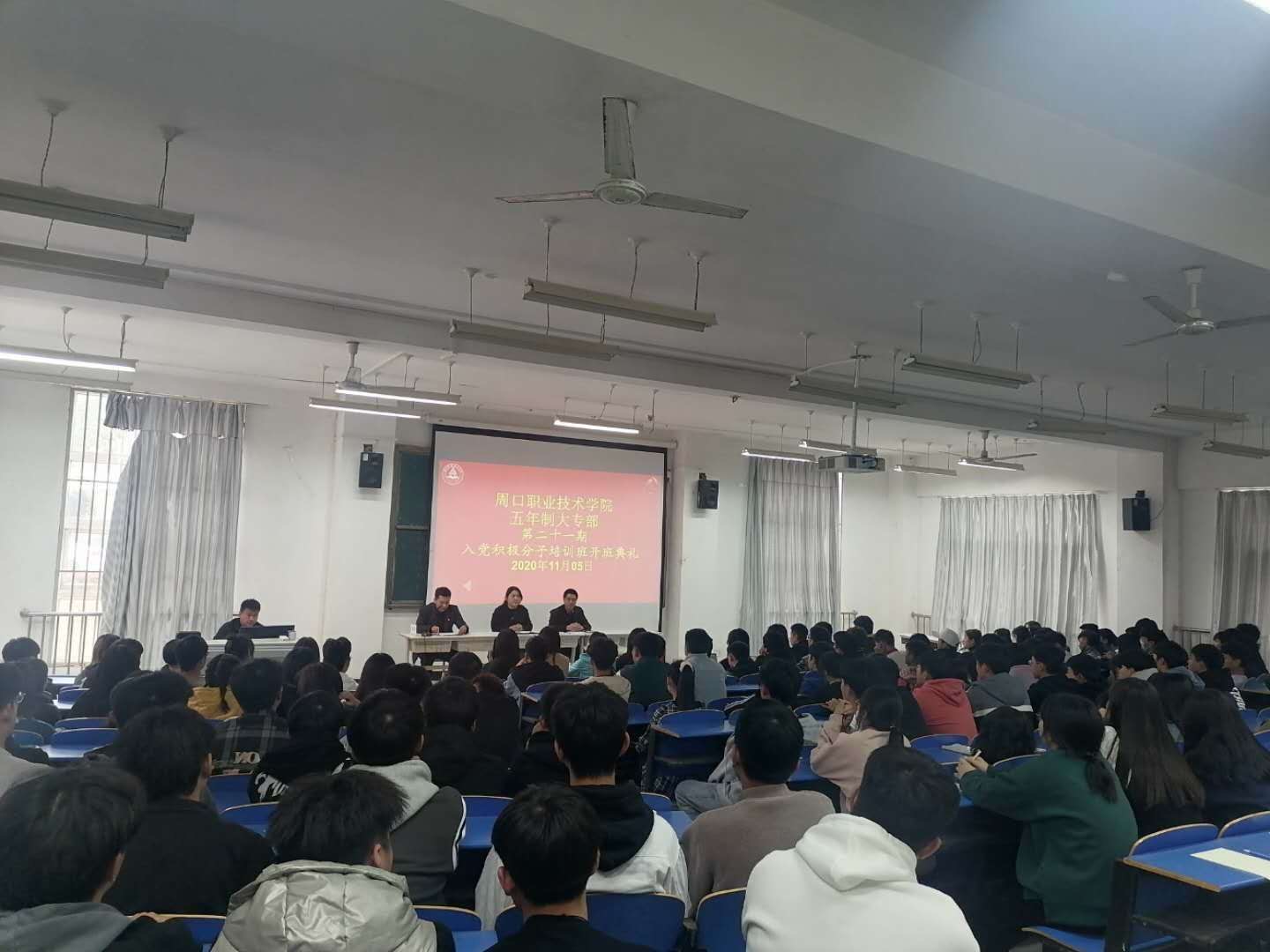 五年制大专部2020年(下)入党积极分子培训班于11月5日下午在北一多媒体教室拉开序幕,五年制大专部党总支书记韩月峰同志、大专部副主任朱平军同志、学生科长董云威同志出席开幕式!