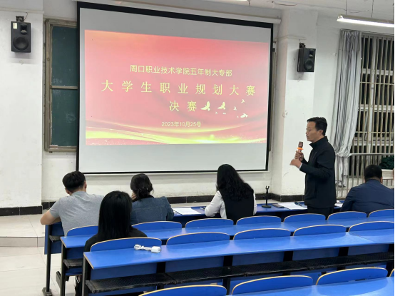 为帮助同学们了解所学专业及其就业前景,引导学生全面认识自我,结合所学专业尽早科学合理地确定自己的职业发展目标,做好学业规划和未来职业规划,勤奋学习、提高技能,提升个人综合素质。五年制大专部于2023年10月25日下午,在北一楼多媒体举办第四届大学生职业生涯规划比赛,党总支书记张建刚、主任王彦伟、副主任闻杰、副主任杨蕊、学生管理办公室主任王铮、辅导员黄晓月、左大妮、赵灿老师担任评委,共有12名参赛者。