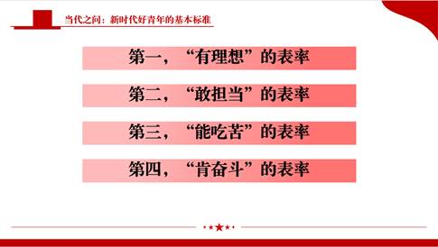 “青年强,则国家强。当代青年生逢其时,施展才干的舞台无比广阔,实现梦想的前景无比光明。”希望我们青年朋友们听党话、跟党走,做有理想,敢担当,能吃苦,肯奋斗的新时代好青年!牢记国之大者,学会“自找苦吃”,笃行“志存高远”,展现青春之志,践行“请党放心、强国有我”的青春誓言。让青春在全面建设社会主义现代化国家的火热实践中绽放绚丽之花。让我们共同为建成富强民主文明和谐美丽的社会主义现代化强国而努力奋斗!
