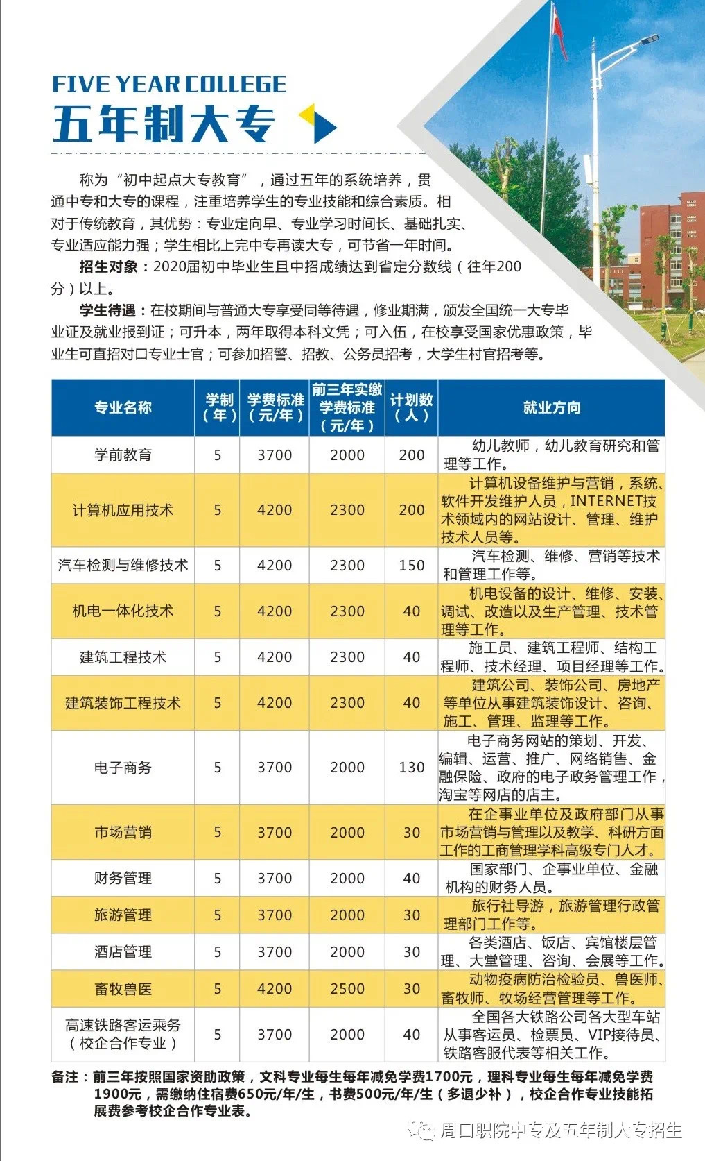 初中生上大学,最好的选择——周职五年制大专部!绕过艰辛的高中,直接进入大学校园,早学专业技能,拓展兴趣爱好,一技傍身立职场!就业升学有保障!伟德(bevictor)官方网站以实力雄厚的大学师资和实训实习平台给初中毕业生开启精彩的人生铺路!五年制大专部全体师生欢迎您!