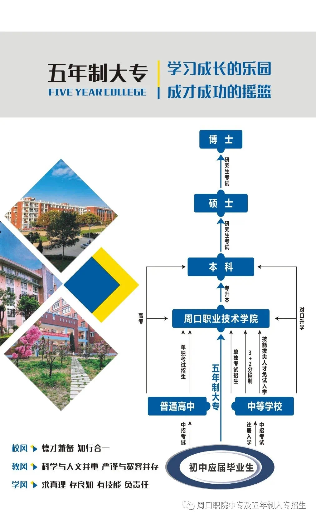 五年制大专部现有教职工43人,其中教授2人,副教授4人,研究生14人;部门高度重视教育教学质量,不断修订和