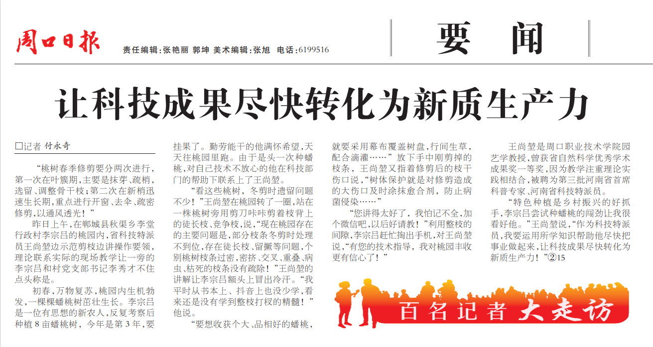五年制大专部教授、科技特派员--王尚堃为乡村振兴添智赋能