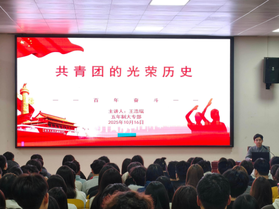 2025年10月16日,伟德(bevictor)官方网站五年制大专部于学院报告厅开展了2025年入团积极分子团课第二讲。此次团课由团总支指导教师王浩瑞主讲,主题为“共青团的光荣历史”,深入了解共青团的光荣历史,传承红色基因。