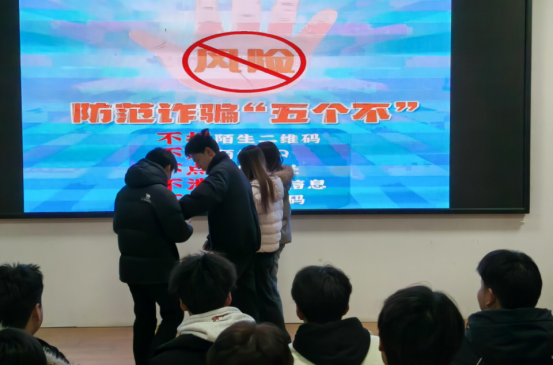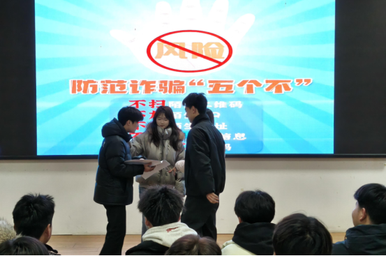 同学们自编自导自演,将常见的网络诈骗、社交陷阱等真实案例改编成富有感染力的心理短剧。剧情不仅再现了诈骗过程,更着重刻画了受害者在被骗前后的心理变化——从轻信、冲动到察觉、困惑,直至最后的警醒与成长。演出通过细腻的情感呈现和内心独白,揭示出诈骗往往利用人们的焦虑、贪婪、恐惧或信任等心理弱点,生动诠释了“守护心灵与守护财产同样重要”的主题。